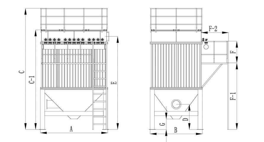 Note: Due to site restrictions or transportation restrictions, the number of hoppers for pulse bag dust collectors may vary: 1 or more, etc. The discharge port can be equipped with pneumatic valves, electric valves, and automatic dischargers.